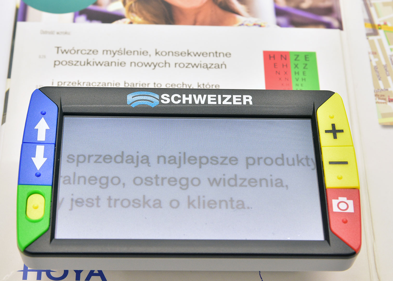 Ale należy pamiętać: im większe powiększenie, tym mniejsze pole widzenia i bliższa odległość czytanego tekstu.